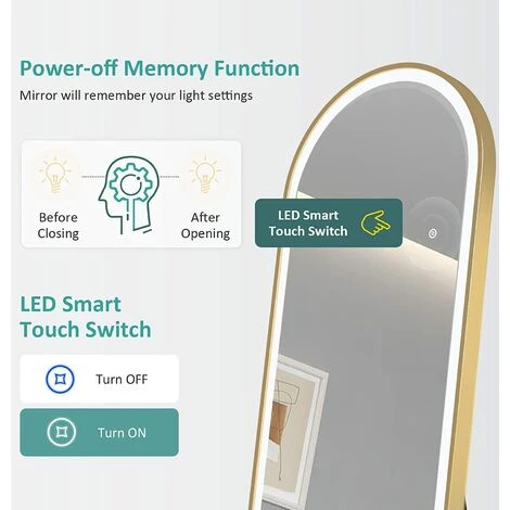 Smart Touch Switch: The touch switch glows blue when the full length mirror light is off, and we can see where the switch is at a glance even in the dark of night. This is a very user-friendly theme from EMKE.
