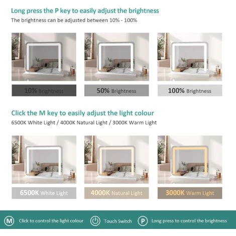 - Smart Touch – Natural and bright lighting, the smart touch screen can adjust three color temperatures and control light brightness to provide clean and bright reflection, and you can get the most natural makeup even at night.