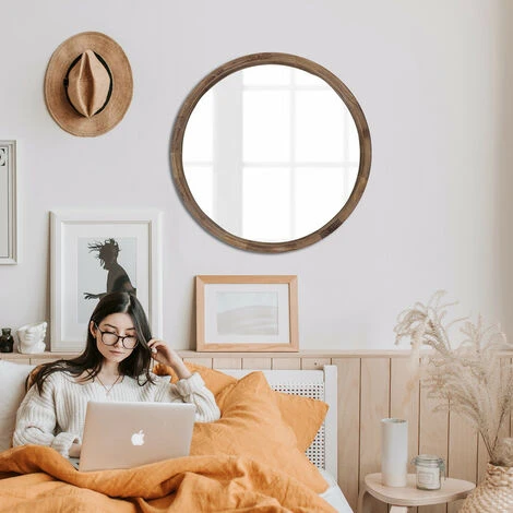 Morley Round Wood Wall Mirror 80 X 80 Cm Dark Rustic Oak