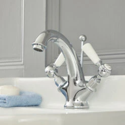 Milano Elizabeth – Traditional 3 Tap-Hole Basin Mixer Tap – Chrome & White (Lever Handles)