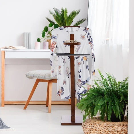 A wrinkled outfit is not only frustrating when you have an important appointment scheduled. To prevent this from happening, simply hang your clothes up on this convenient coat hanger valet. It features a clothes rail and trouser rail to make sure that jackets, shirts, pants and skirts keep their shape. A small tray provides space for jewellery, clocks, belts and more to make sure your entire outfit is complete and compactly stored.